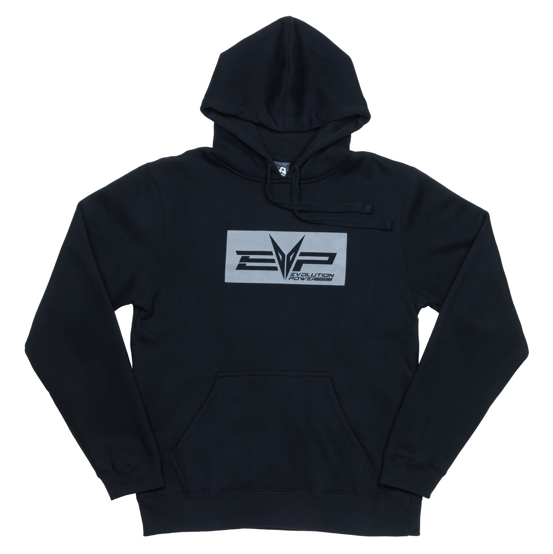 Our clean and simple Reverse Logo EVP Hoodie features our EVP logo on the front center of a black hooded sweatshirt with Evolution Powersports on the back of the hoodie. It is offered in a variety of sizes.