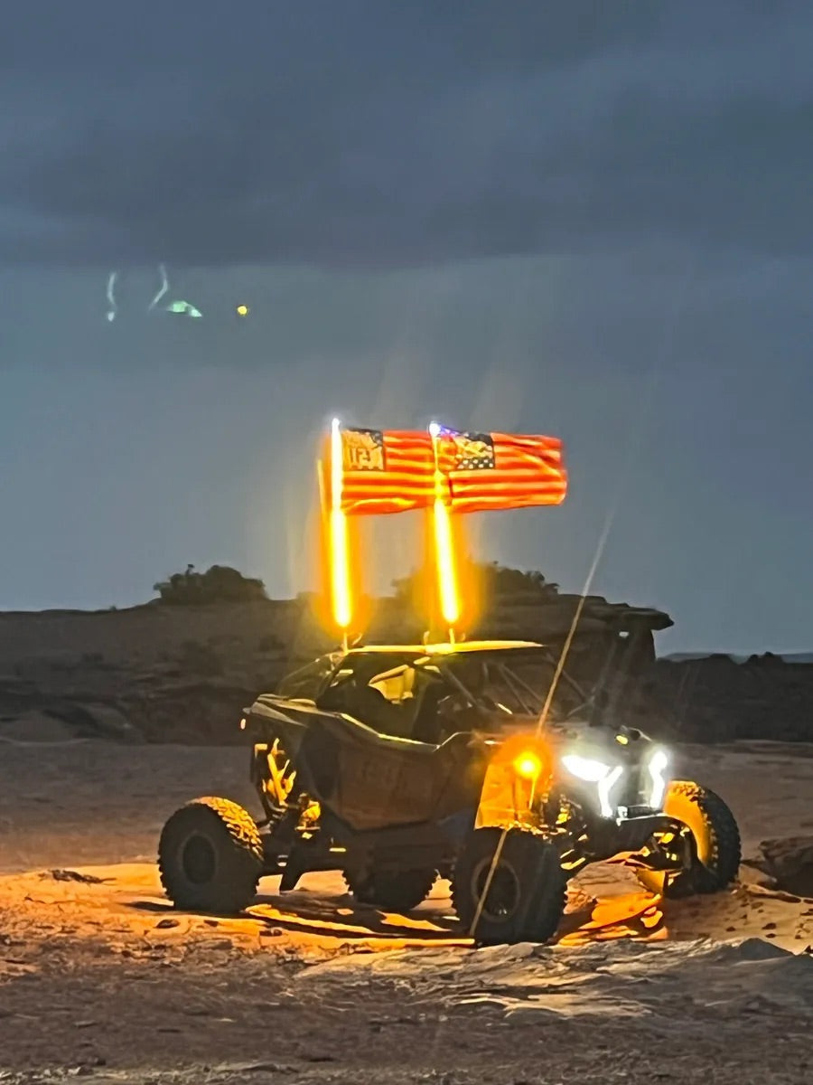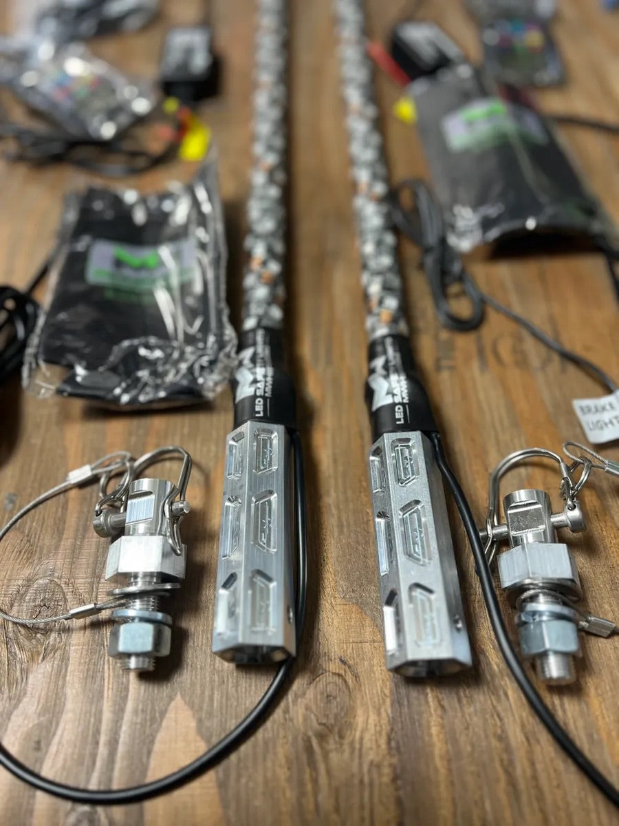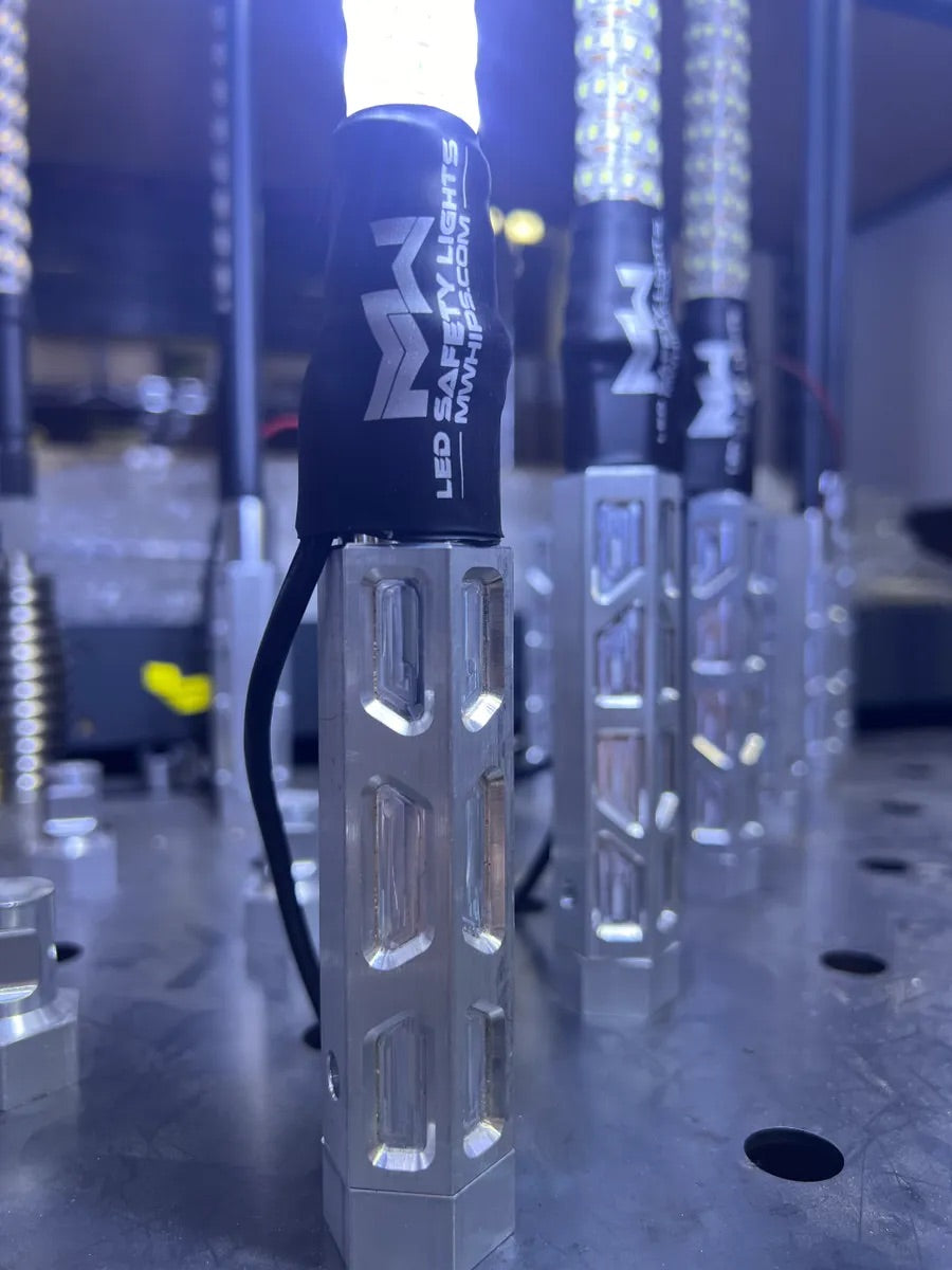 Our newly patent pending USA whip line features a support rod and base technology like never before.
