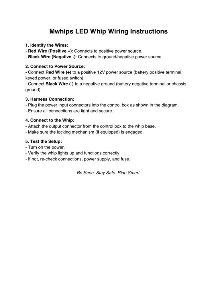 - 10’ Wiring Harness per whip (two wire, hot + & ground - per whip)