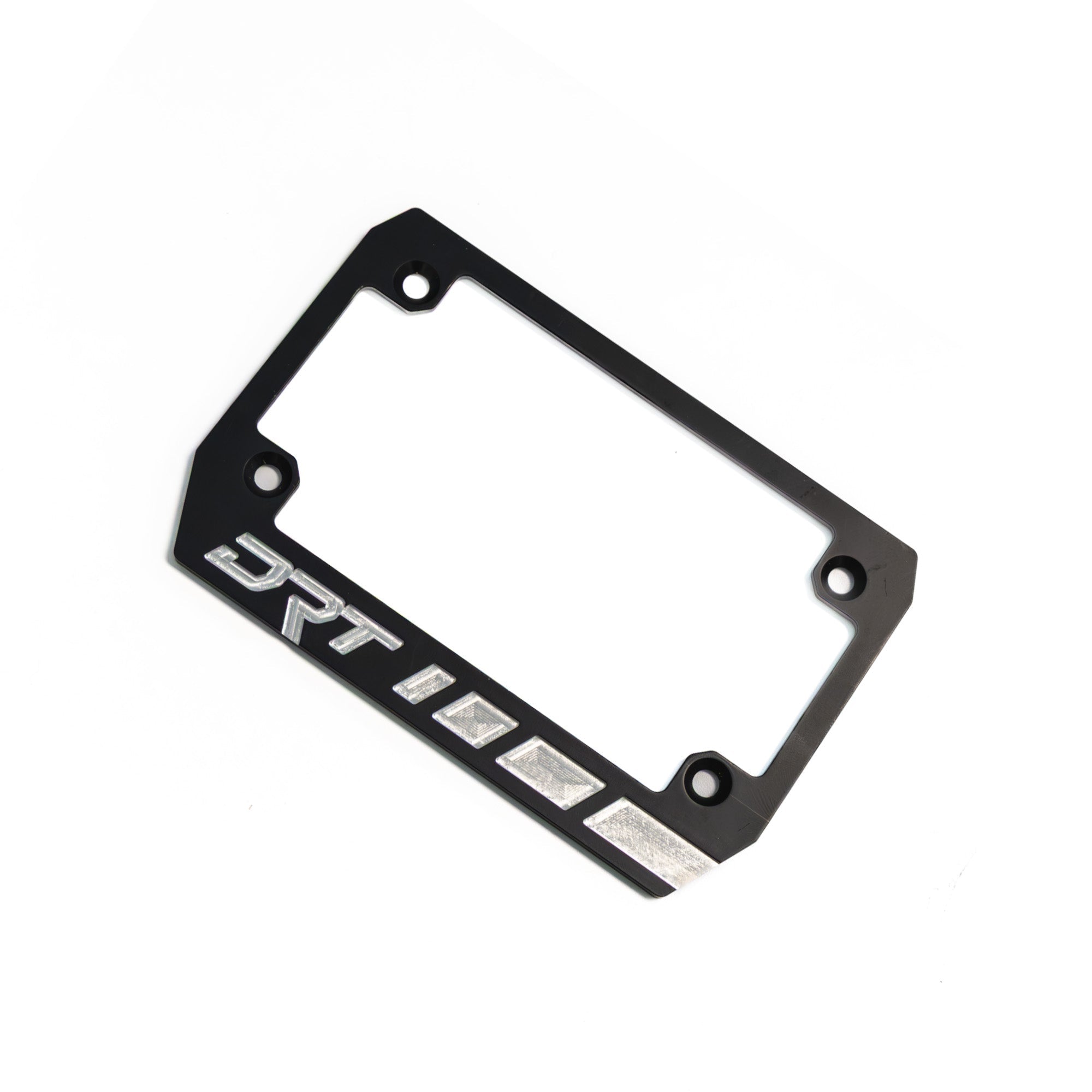 Constructed from aerospace-grade 6061-T6 aluminum, the registration plate is CNC machined for strength and consistency, then finished in a black mil-spec anodize with post-machined contrast cuts for a subtle, refined look. The stepped aluminum plate is CNC laser cut and formed, then finished in a durable powder coat to pair seamlessly with the DRT Motorsports line of tube clamps. A separate laser-cut flat plate provides a dedicated surface for mounting your registration sticker, giving you flexibility depending on your setup.