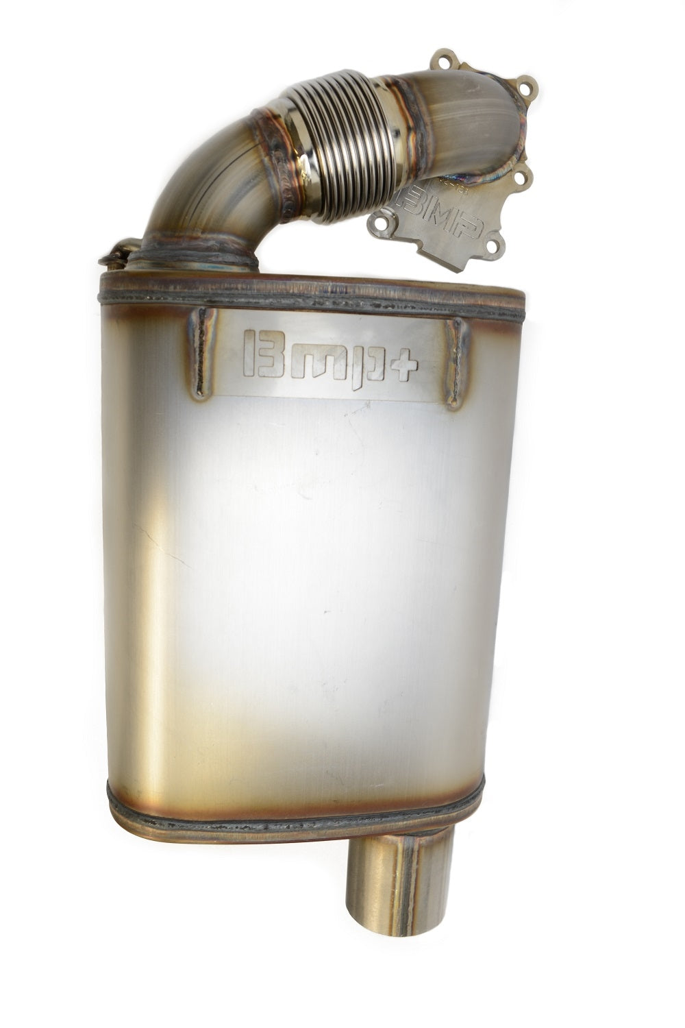 Are you looking for the best exhaust on the market for the 998 turbo? Look no further! This BMP Full Velocity muffler gains a massive 20-25 horsepower due to the unique internal design. After spending many hours on our state of the art Superflow 902 dyno, we developed a recipe that will blow the competition away. This Full Velocity has an excellent sound at all RPM, and is very quiet for a straight through exhaust. This muffler bolts up right to the turbo and is made of 100% stainless steel. It's lightweight and fits perfectly into the chassis. Available in bare stainless, or ceramic coated to help hold more heat into the exhaust.