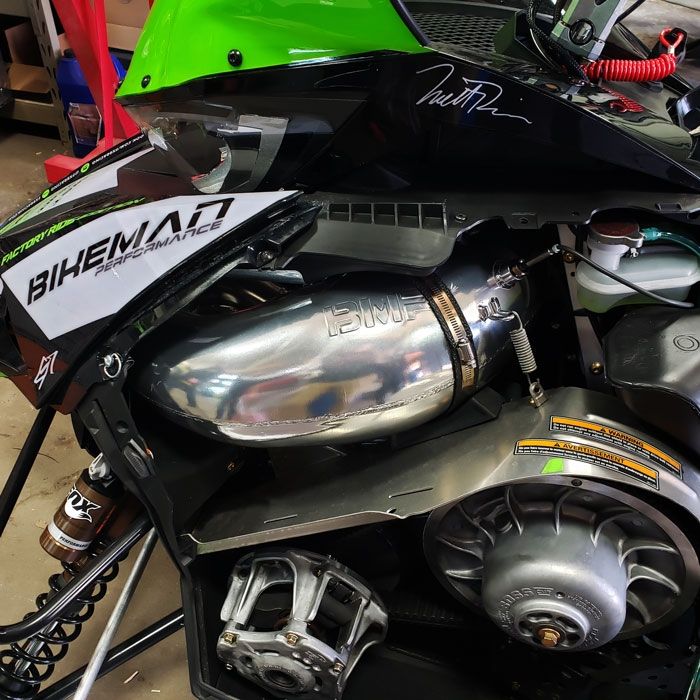 Our Fatt Azz single pipe produces huge horsepower and torque! When used in conjunction with our BMP Performance Manifold and tuning , your motor will gain a solid horsepower over stock! This pipe has a very broad powerband with a ton of grunty torque making peak power from 8000-8200 RPM. It fits right into the stock muffler, or you can use our lightweight muffler for even less weight. The pipe installs in minutes and works great even on our big bore 900 motors. It can be run without tuning, or for even bigger gains add our BMP Tuning. Peak Power is made from 8000-8200 RPM with this pipe. **These pipes only come ceramic coated due to close hood tolerances**
