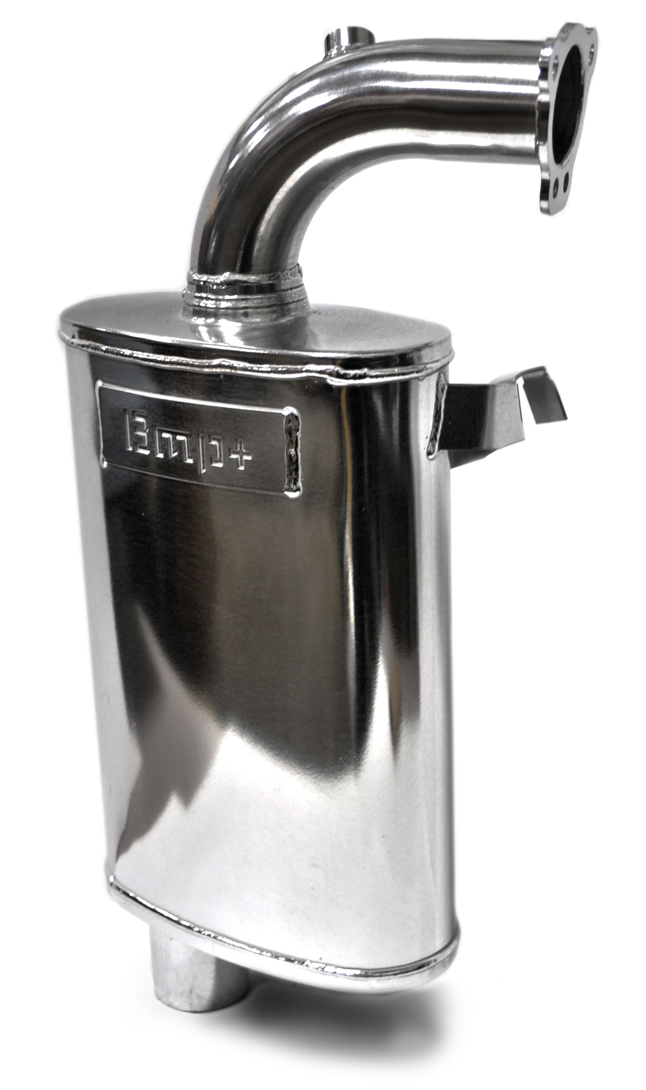 This BMP Full Velocity Muffler is perfect for those of you who want a quiet (around 5-6 dB louder than factory) yet extremely free flowing muffler. Made out of 100% stainless steel, this muffler is long lasting and increases horsepower over the factory unit while being 9 lbs lighter. It is then ceramic coated to hold the heat into the muffler and for a great looking finish. This muffler increases horsepower a huge 13-14 HP over stock and is extremely free flowing for running your high boost tunes! You just can't beat this BMP Full Velocity Muffler.