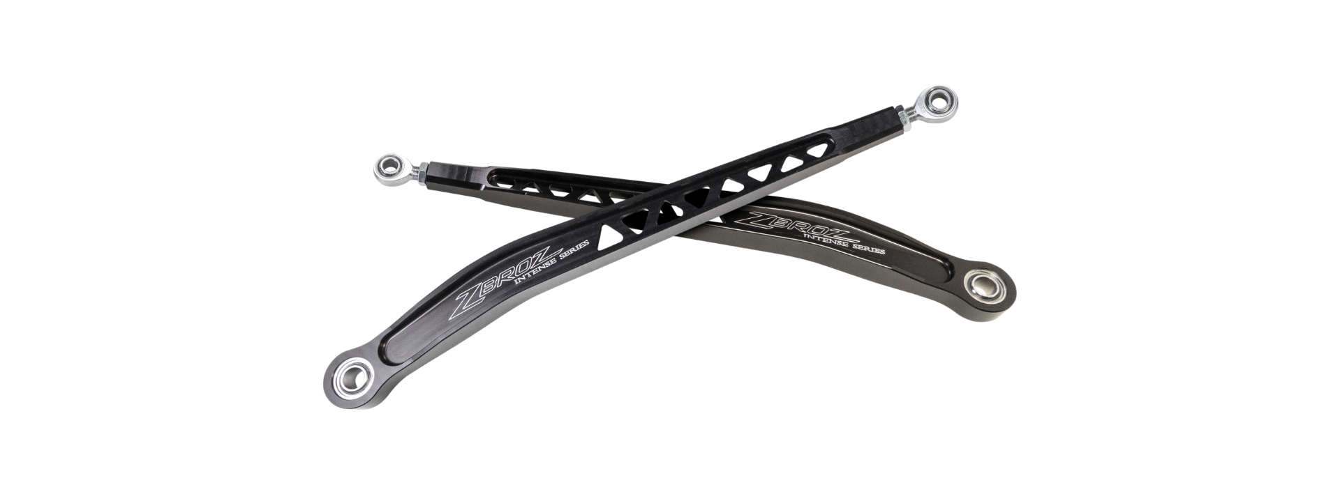 ZBROZ is excited to announce our all-new INTENSE SERIES Radius Rods for the CanAm X3 64” models. Our X3 INTENSE SERIES Radius Rods are larger and stronger than ever! We stayed with our signature I-beam design and added unmatched durability coupled with eye-catching style! Our (INTENSE) design provides superior strength while maintaining a reasonable weight. These new INTENSE SERIES Radius Rods are machined from solid 6061-T6 Aluminum, outfitted with high-quality, high-strength Teflon-lined Heim joints, anodized black (available in raw) then engraved and chamfered to achieve a unique look. Camber adjustment is quick and simple. LOWER RADIUS RODS Our all-new high-clearance INTENSE SERIES Radius Rods are larger and stronger than ever! We stayed with our signature I-beam construction delivering unmatched durability and eye-catching style! Our Lower Radius Rods offer a high-clearance design that exceeds the standards for high-performance factory suspension. Constructed from billet Aluminum, these radius rods provide maximum durability even in difficult terrain without worrying about getting hung up on rocks or other trail obstacles. FEATURES AND BENEFITS: - Stronger signature I-beam design - Made from Billet 6061-T6 Aluminum - Max ground-clearance design - Teflon lined heavy duty Heim joints - Direct bolt-on installation, no modifications required