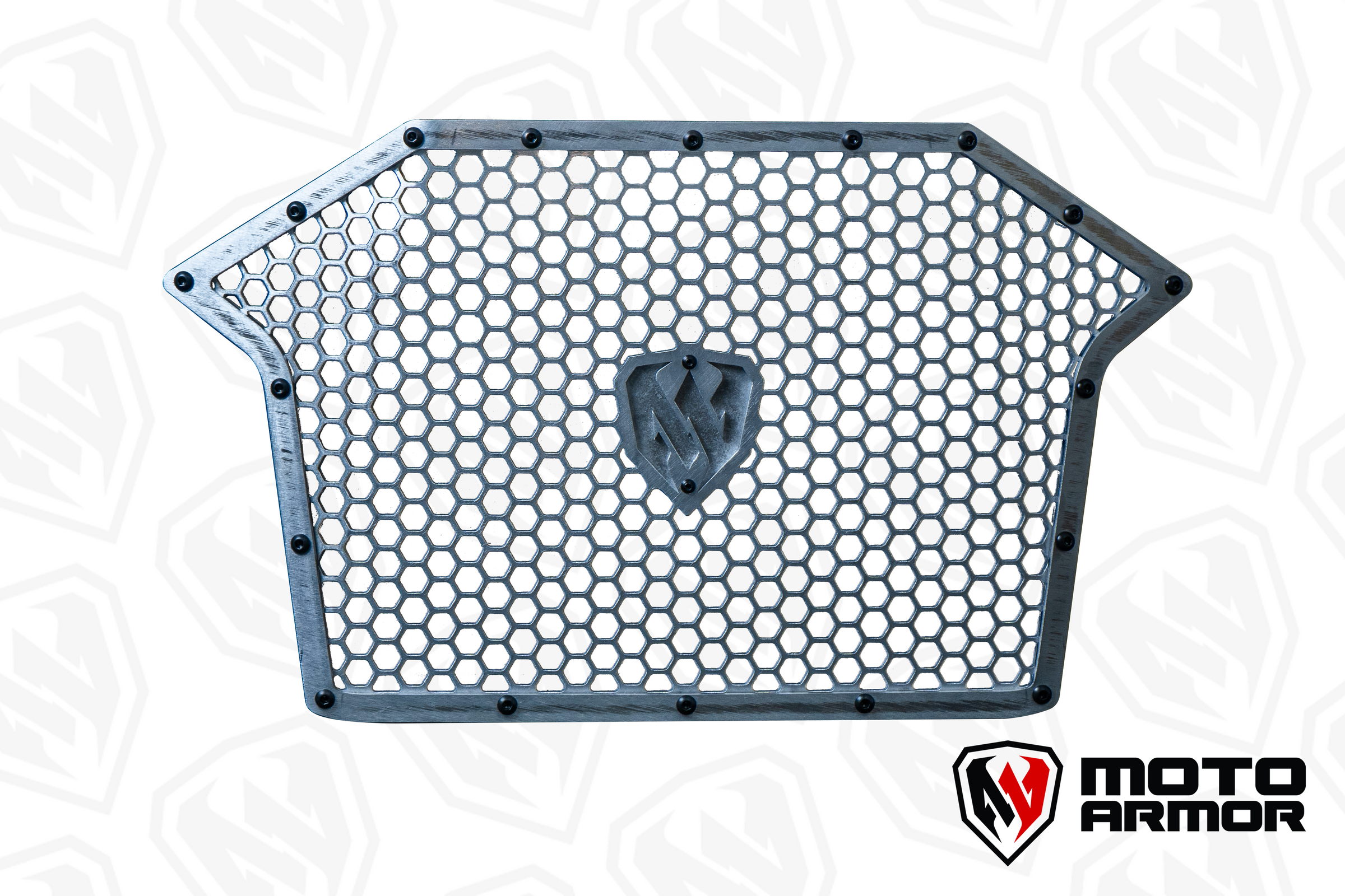 Add style and protection without sacrificing air flow with a Moto Armor Premium Radiator Grill. Too many aftermarket grills have large openings that compromise protection, or they block too much airflow that compromises cooling. Moto Armor's honeycomb design offers the best combination of protection without affecting flow. Made out of 1/8" thick aluminum which is twice as thick as most metal grills. Full aluminum construction means no rusting in the event of a chip. Stainless steel bolts attach the grills without the worry of corrosion. Features: 1/8" (.125") Thick Aluminum Construction Free Flowing design with added protection over stock Bolt on design, (replaces stock plastic radiator grill) Stainless Steel Bolts Made in the USA Fitment: 2020-2024 RZR PRO XP2020-2024 RZR PRO XP 42022-2024 RZR Turbo R2022-2024 RZR Turbo R42022-2024 RZR Pro R2022-2024 RZR Pro R4 CLICK HERE FOR INSTALLATION INSTRUCTIONS WARNING: Cancer and Reproductive Harm - www.P65Warnings.ca.gov