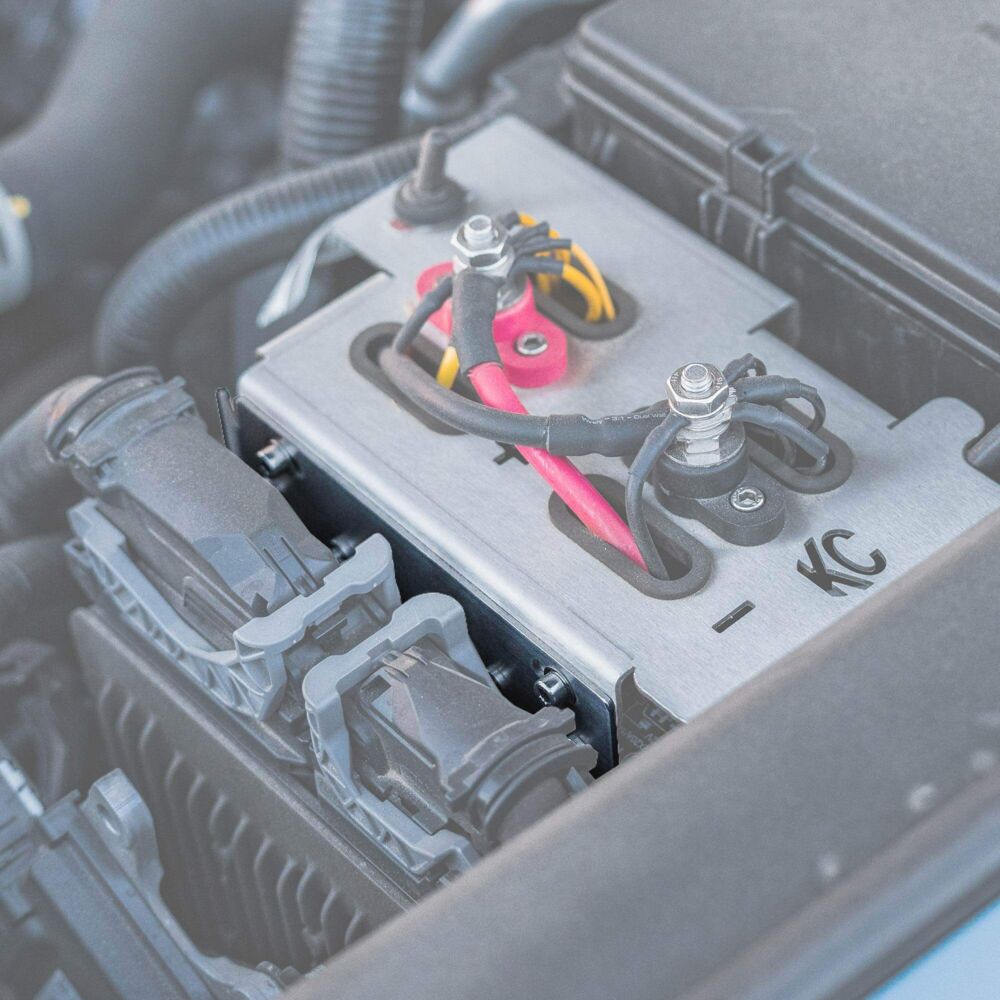 Originally developed to pair with KC’s Power Distribution Panel (PDP) on the 2024-2025 Toyota Land Cruiser 250 (SKU 7387), this plate makes smart use of the tight space beneath the PDP. However, its hole pattern is also compatible with a range of vehicle platforms, including the Jeep JL/JT engine tray and other universal applications.