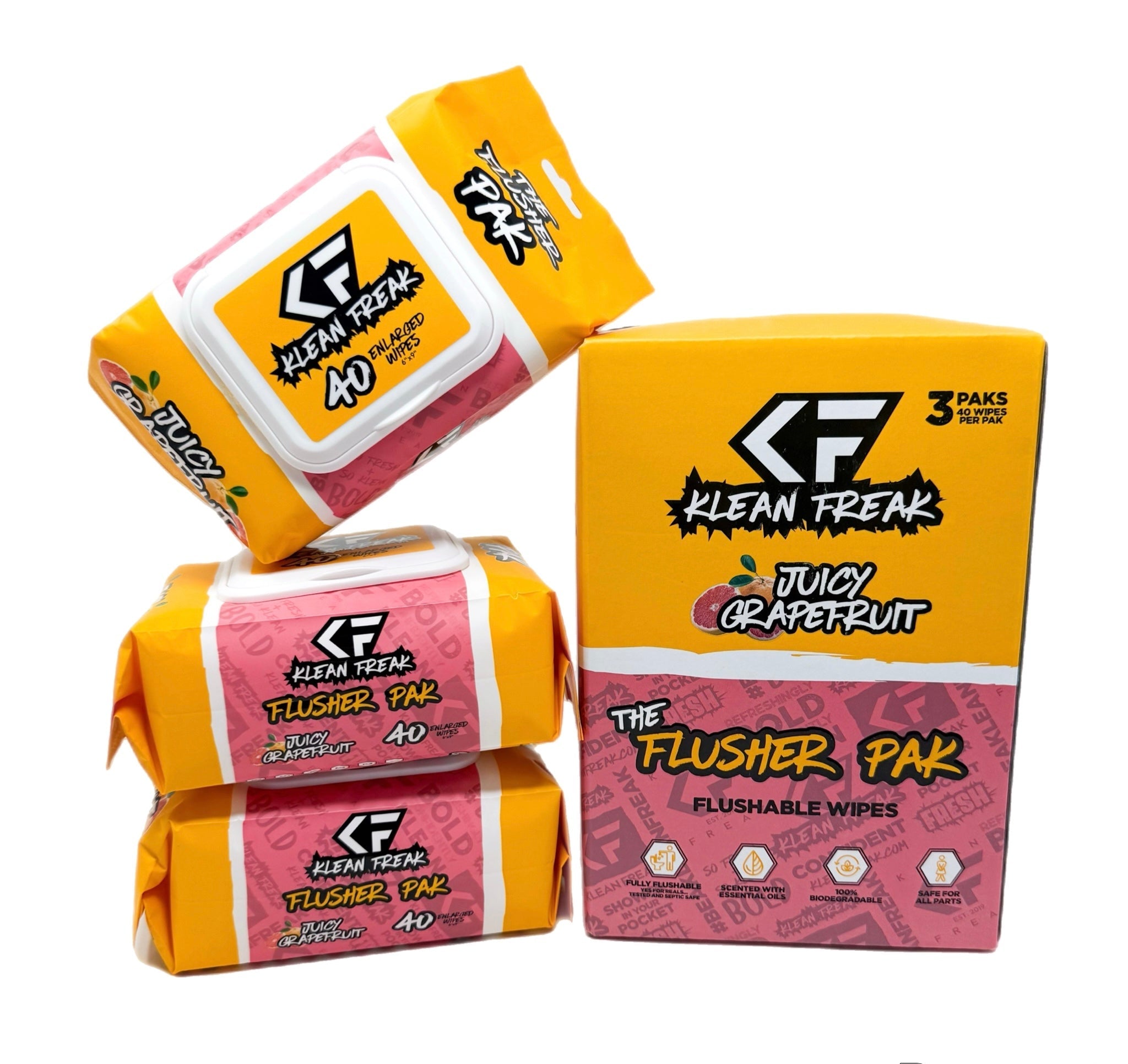 Your bathroom breaks just got an upgrade. Say hello to The Flusher 40 Pak, your new go-to for freshness on the go, or right at home. Each pack holds 40 premium biodegradable wipes that are sewer and septic safe, packaged in a compact, resealable pak that fits just about anywhere: toilet backs, drawers, backpacks, glove compartments, or gym bags.